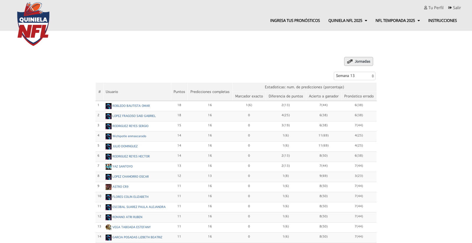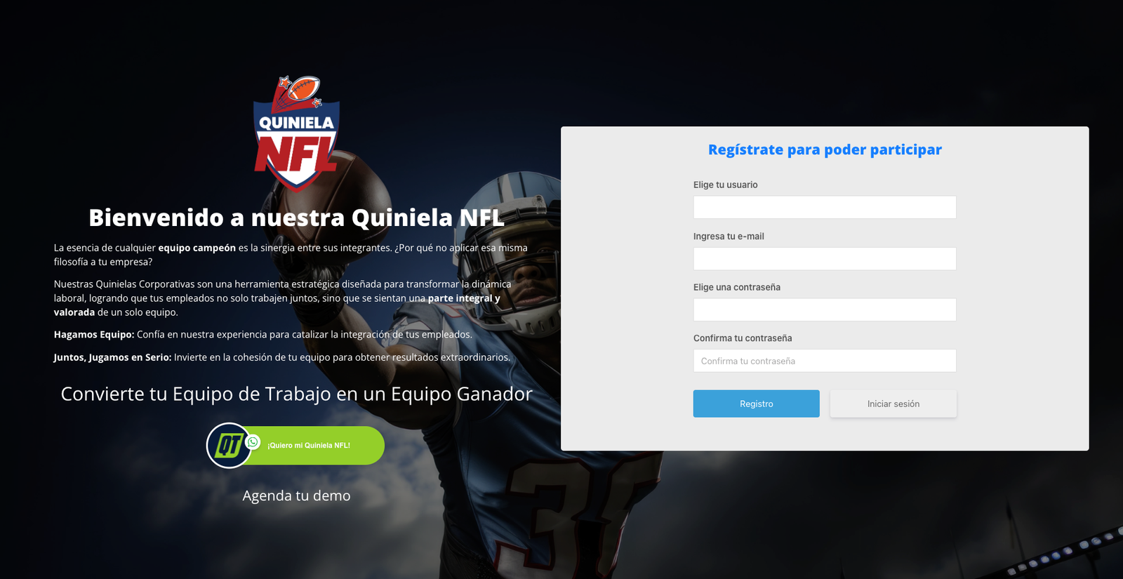 Transforme la pasión de la NFL en un vínculo inquebrantable con sus clientes y colaboradores. Durante cinco meses, nuestra quiniela se convierte en el punto de encuentro semanal que su marca necesita, estableciendo una línea de contacto directa y constante.